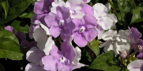 Brunfelsia pauciflora, communément appelé Hier, aujourd'hui, demain, est un arbuste persistant qui fascine par sa floraison unique. Originaire des forêts tropicales d'Amérique du Sud, notamment du Brésil, cet arbuste doit son nom à l'évolution chromatique de ses fleurs. Au début, elles apparaissent d'un violet profond, deviennent bleues le jour suivant et finissent en blanc au troisième jour, offrant ainsi un spectacle éblouissant.